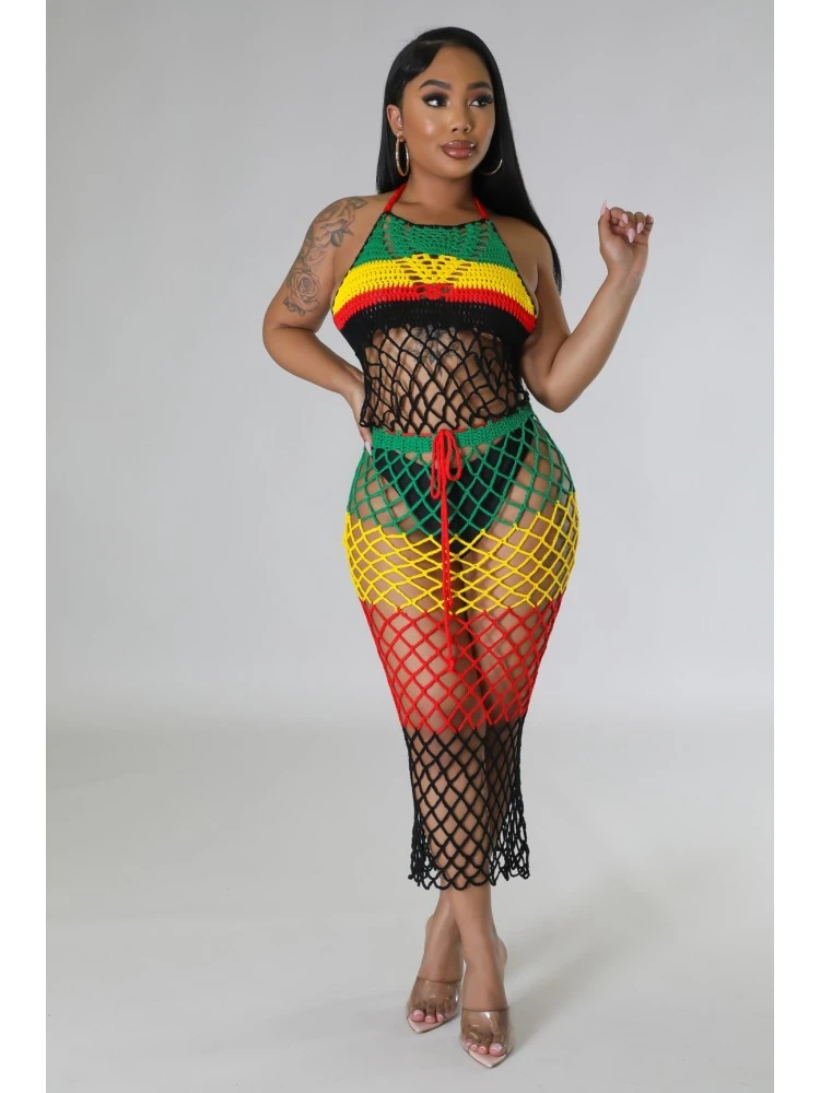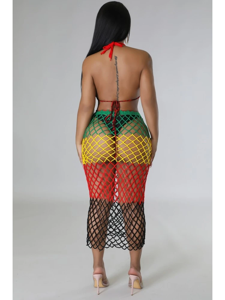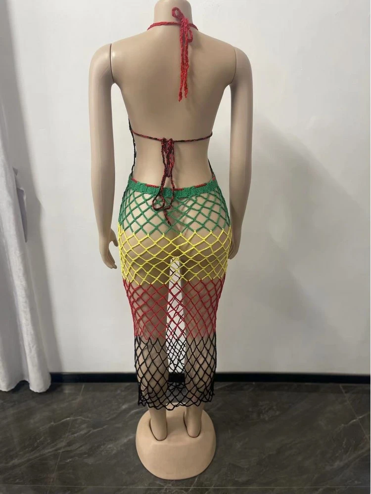 Colorblock,Contrast Color,Fishnet,Halter,Lace Up,Tie-wrap,Fringe,Color Matching,Pullover,See Through