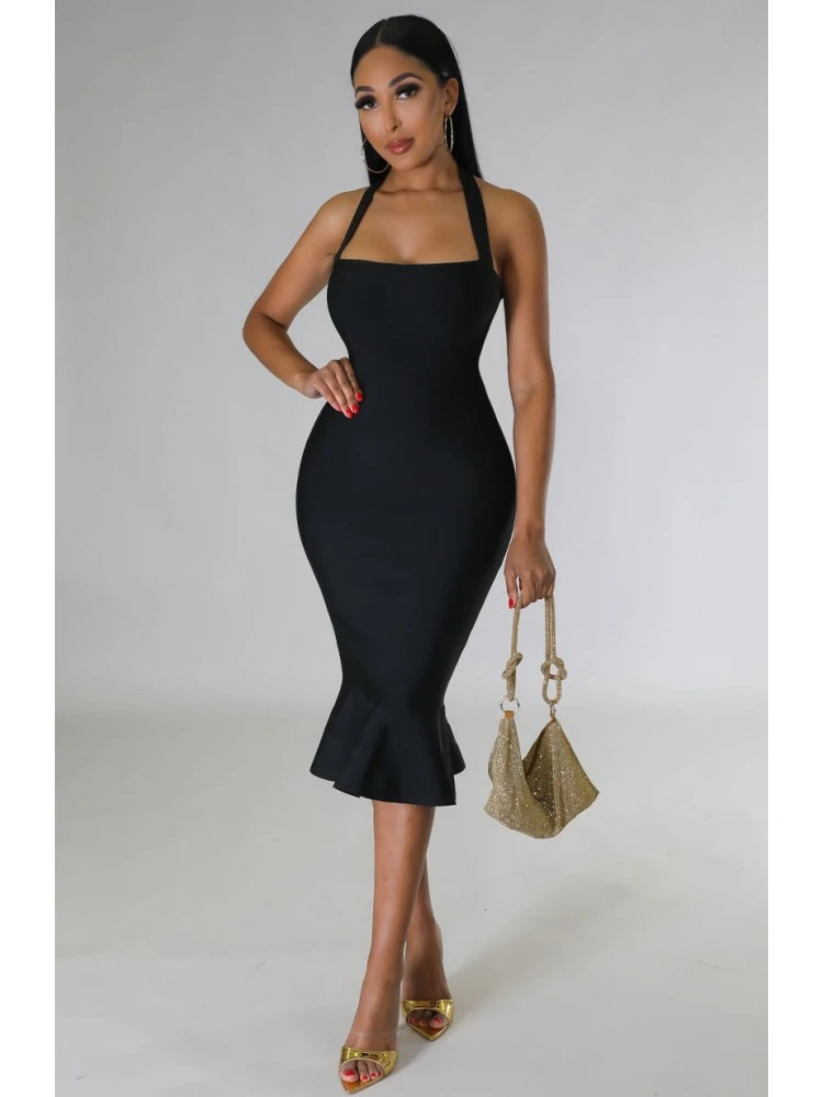 Halter Backless Solid Sleeveless Dress